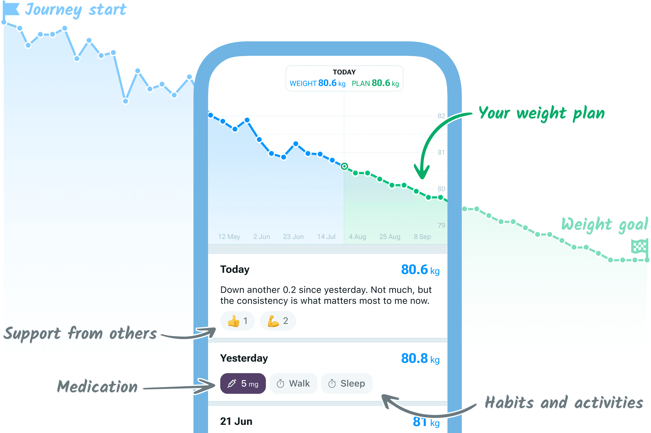 Started using this app after a friend told me about it. She had started using it to track her glp-1 journey & decided to do the same. I love it! It syncs easily with 🍎health, you can interact with others on a similar journey, you can check out your 7 or 14 day average plus so much more. Really enjoying it.